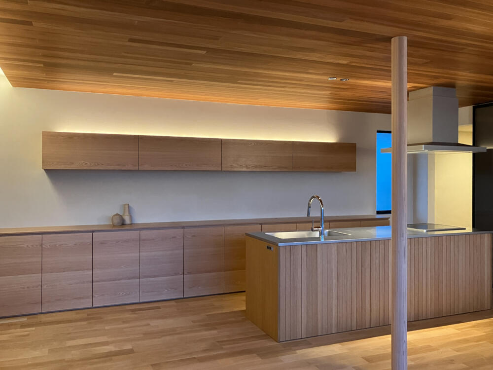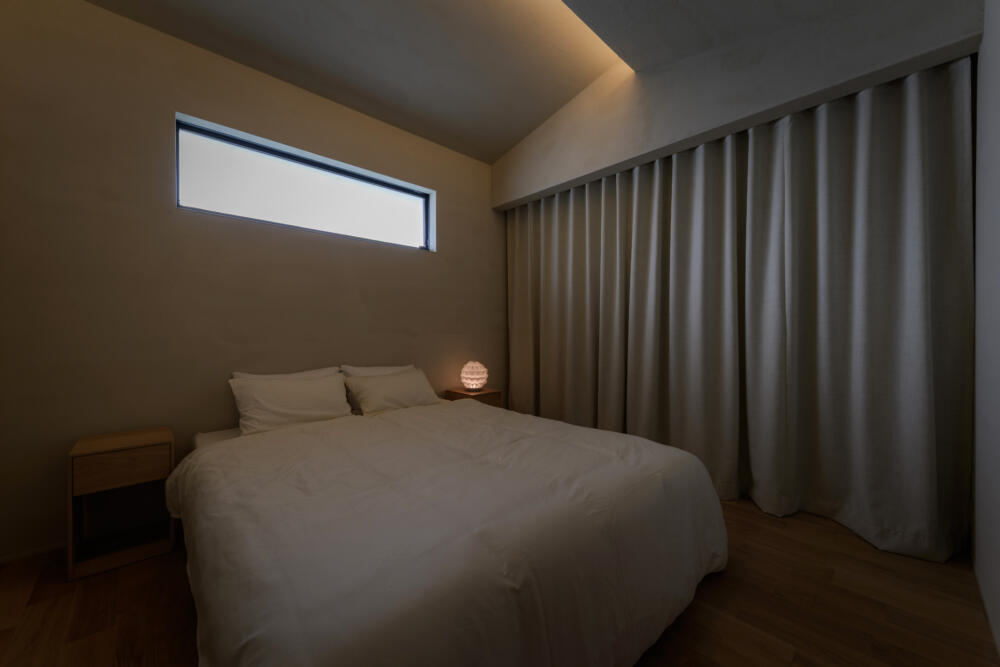 天井に主張する光は置かず、調整可能な間接照明だけで暮らしを包み込みます。