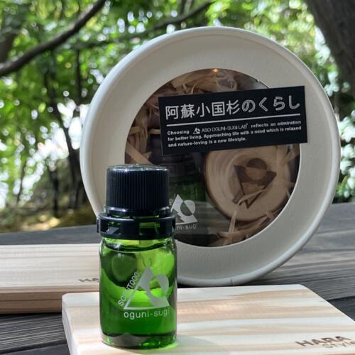 原工務店の新築工事で採用中の阿蘇小国杉を使用した、アロマオイルをプレゼント!