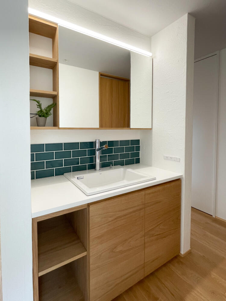 朝の支度も、夜のひとときも、気持ちよく向き合える洗面スペース。