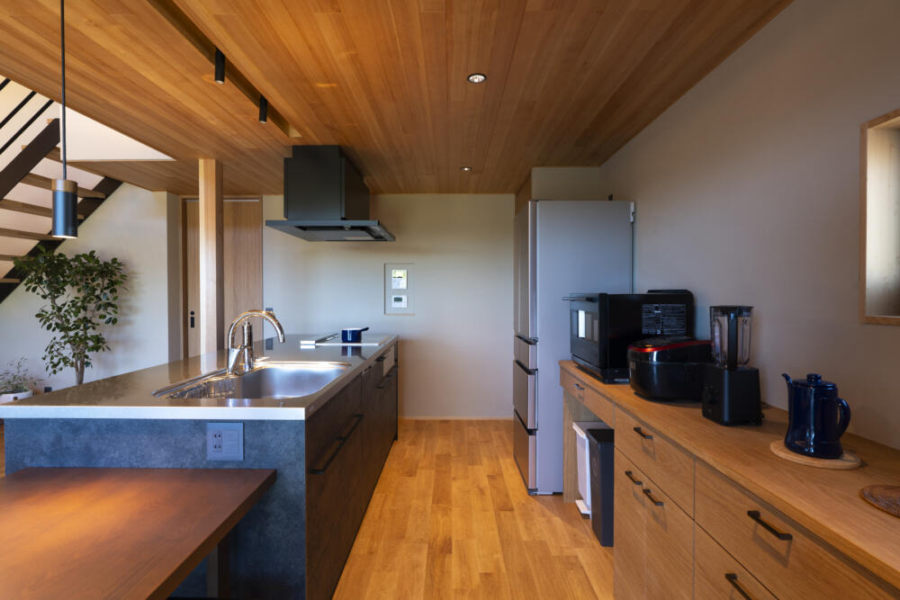 キッチンとダイニングは横並びで配置され、配膳や片付けもスムーズ。