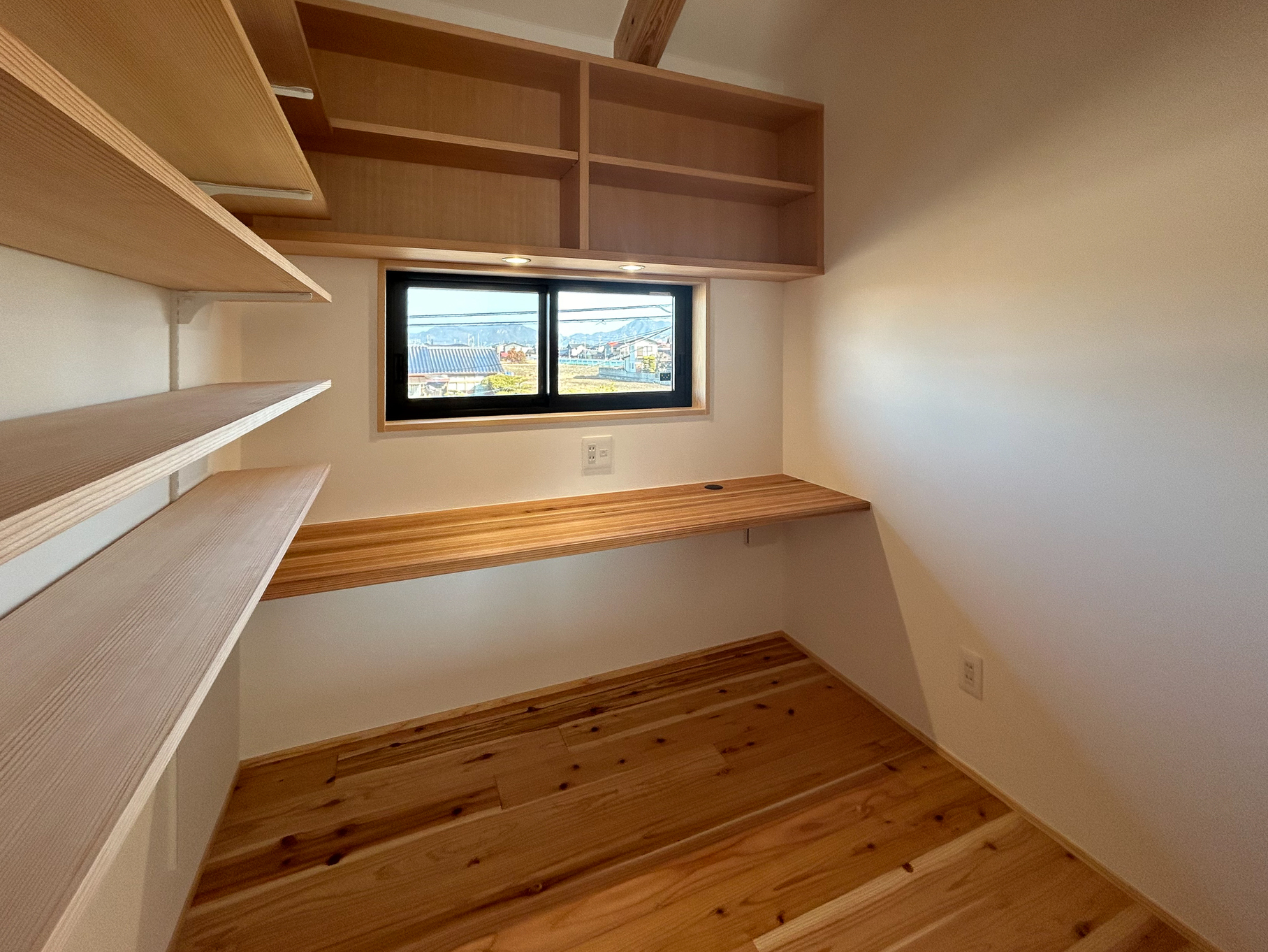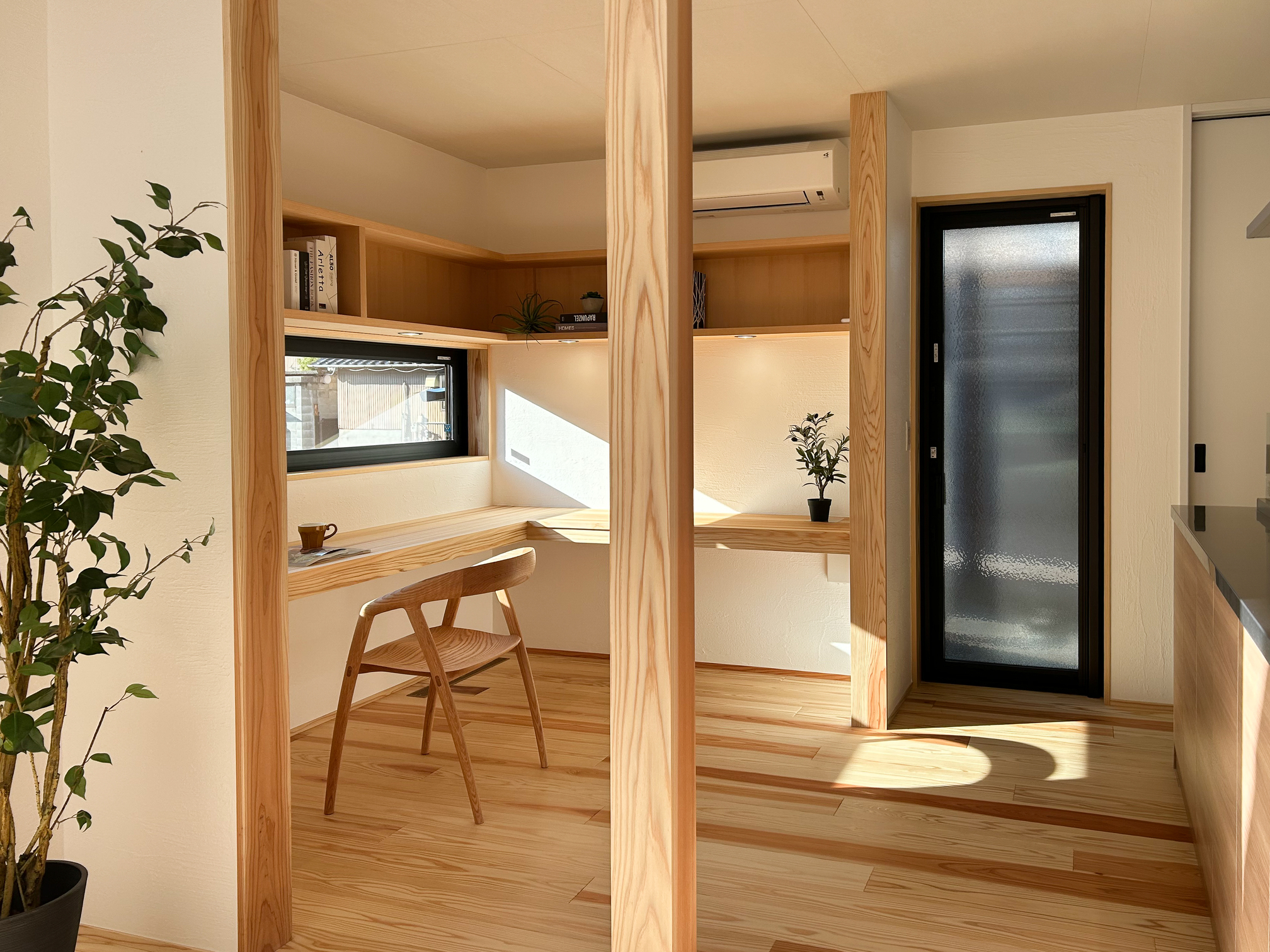 窓辺に設えたワークスペースは、自然光がすっと入る心地よい場所です。
