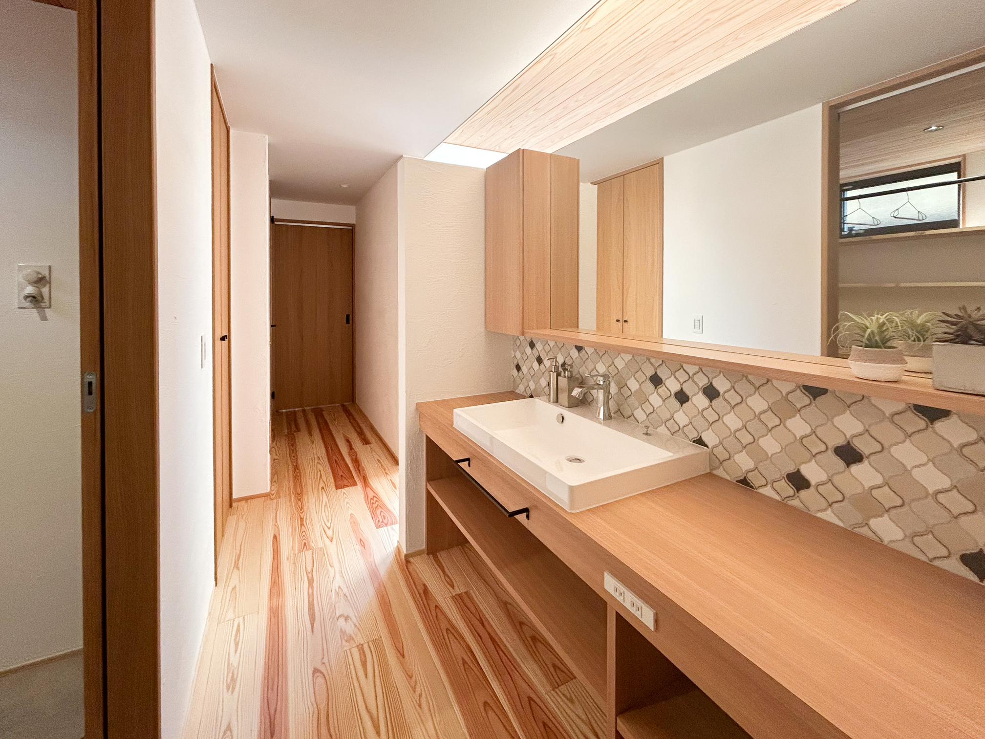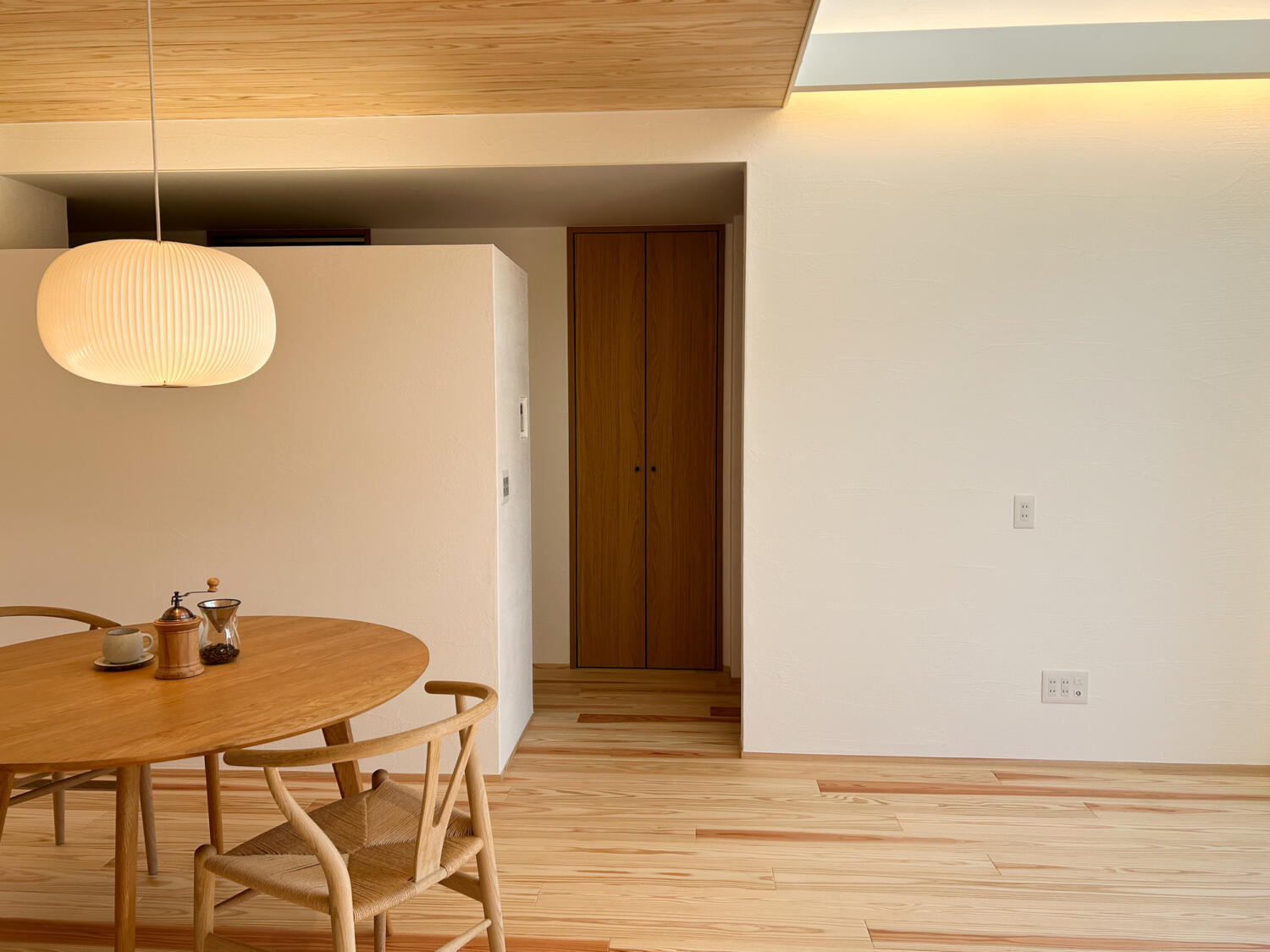 やわらかな光が差し込むと、木目の表情がより豊かに浮かび上がり、空間にあたたかさを添えてくれます。
