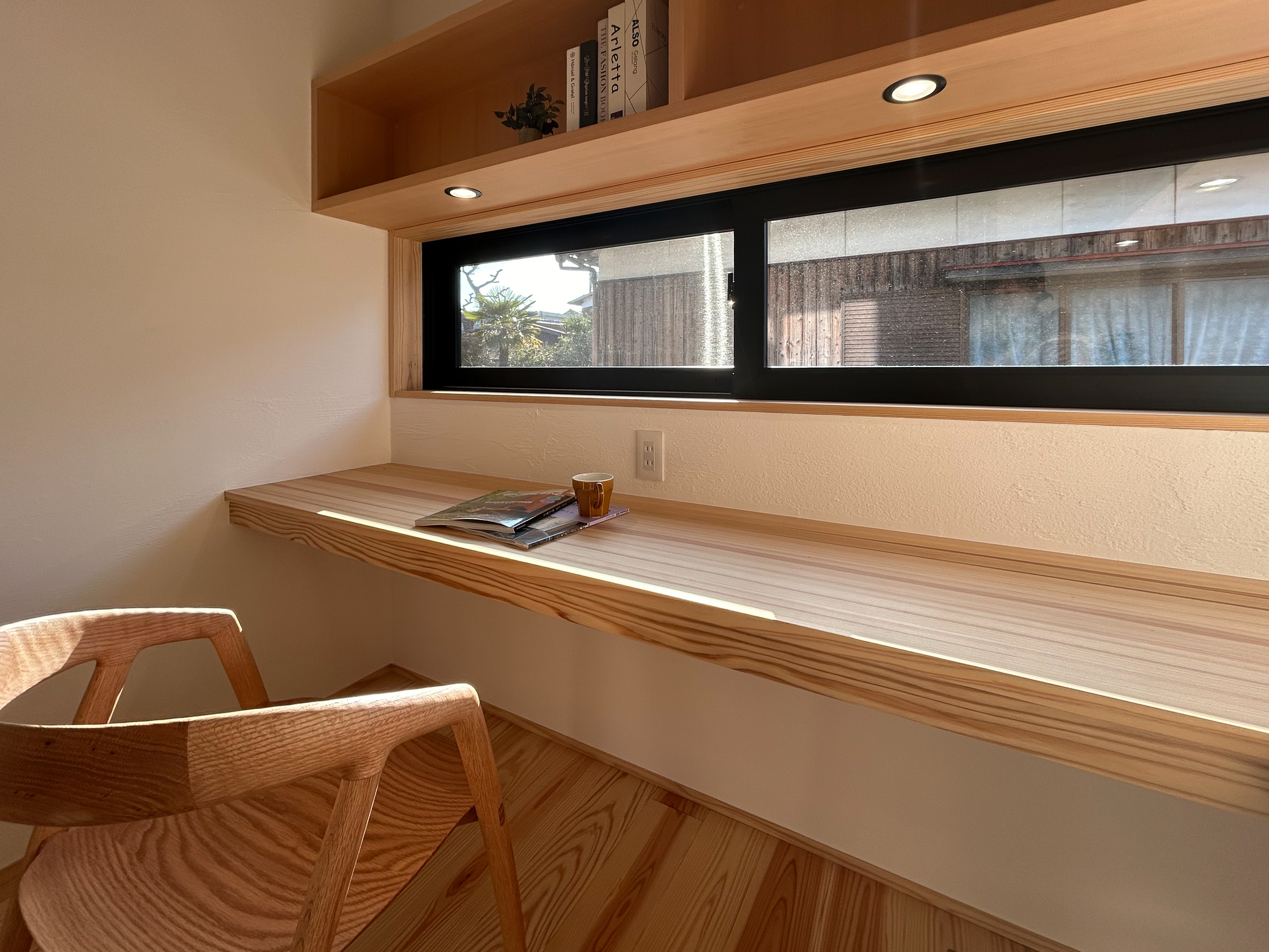 木のカウンターに手を添えると、素材そのものの温かみが感じられ、ゆったりとした気分で作業に向かうことができます。