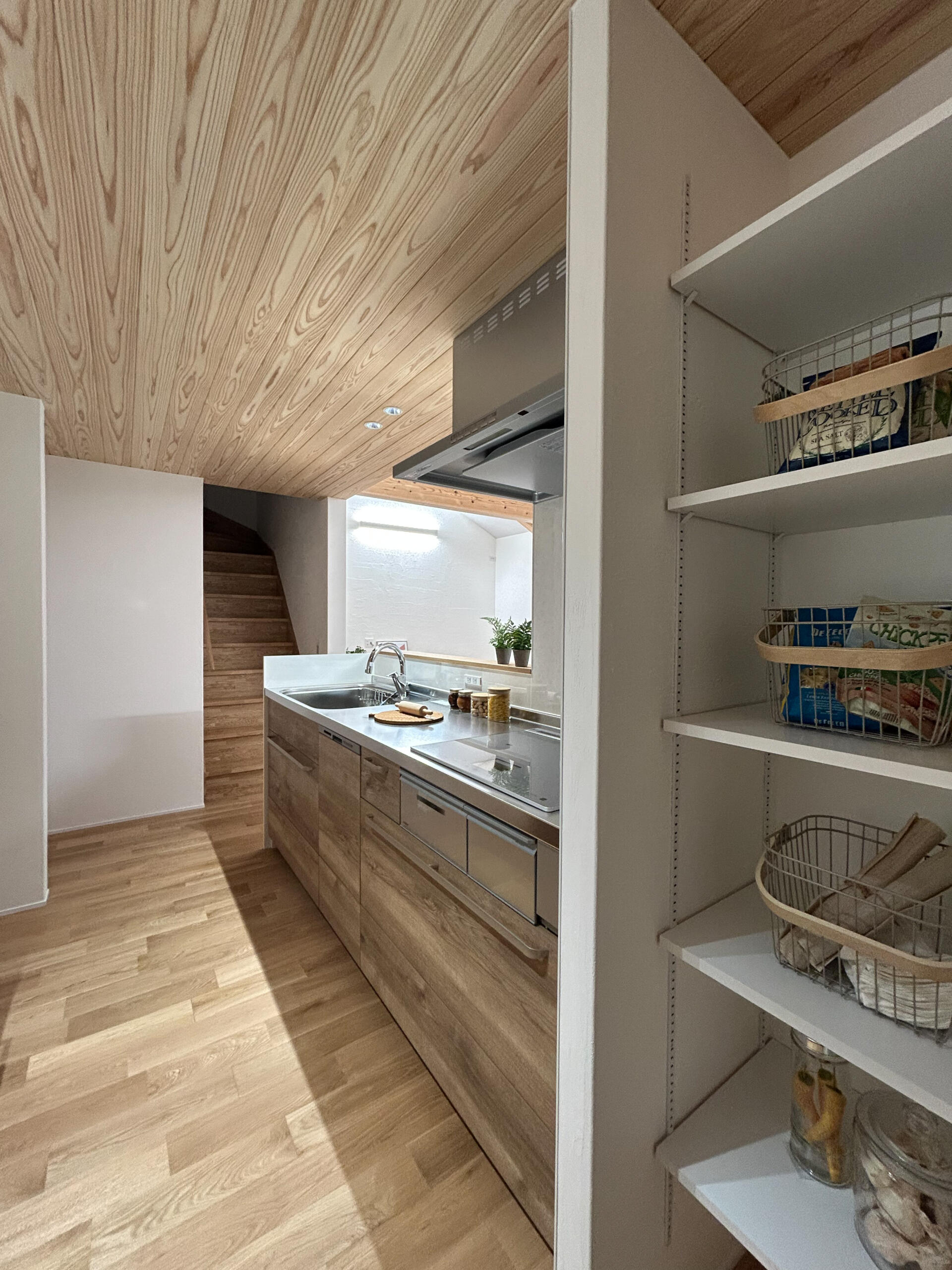 無垢材に包まれる、家族が集う勾配天井のLDK